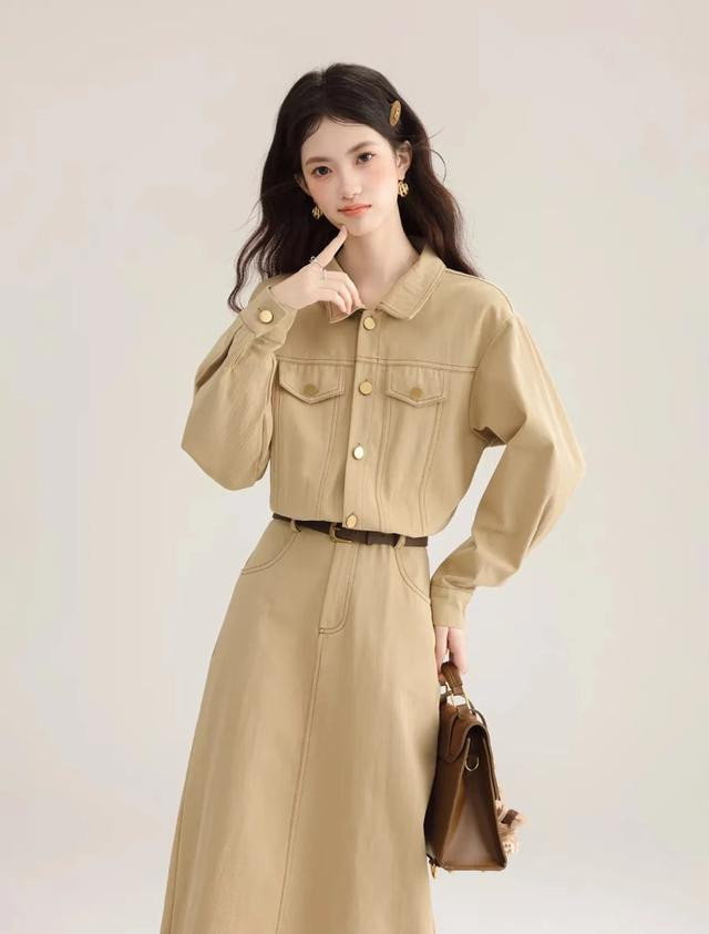 如果你喜欢柔和色调,可以选择棕色系或燕麦色的套装。这些温暖的颜色不仅适合秋冬季节,还能给人一种温柔大方的感觉。比如,一件棕色的毛衣搭配同色系的半身裙,再配上一双棕色的短靴,既保暖又时尚。