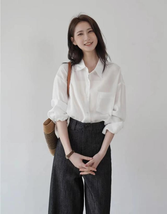 这样的搭配既简约又大方,无论是搭配一双黑色高跟鞋还是平底鞋,都能展现出职场女性的干练与优雅。